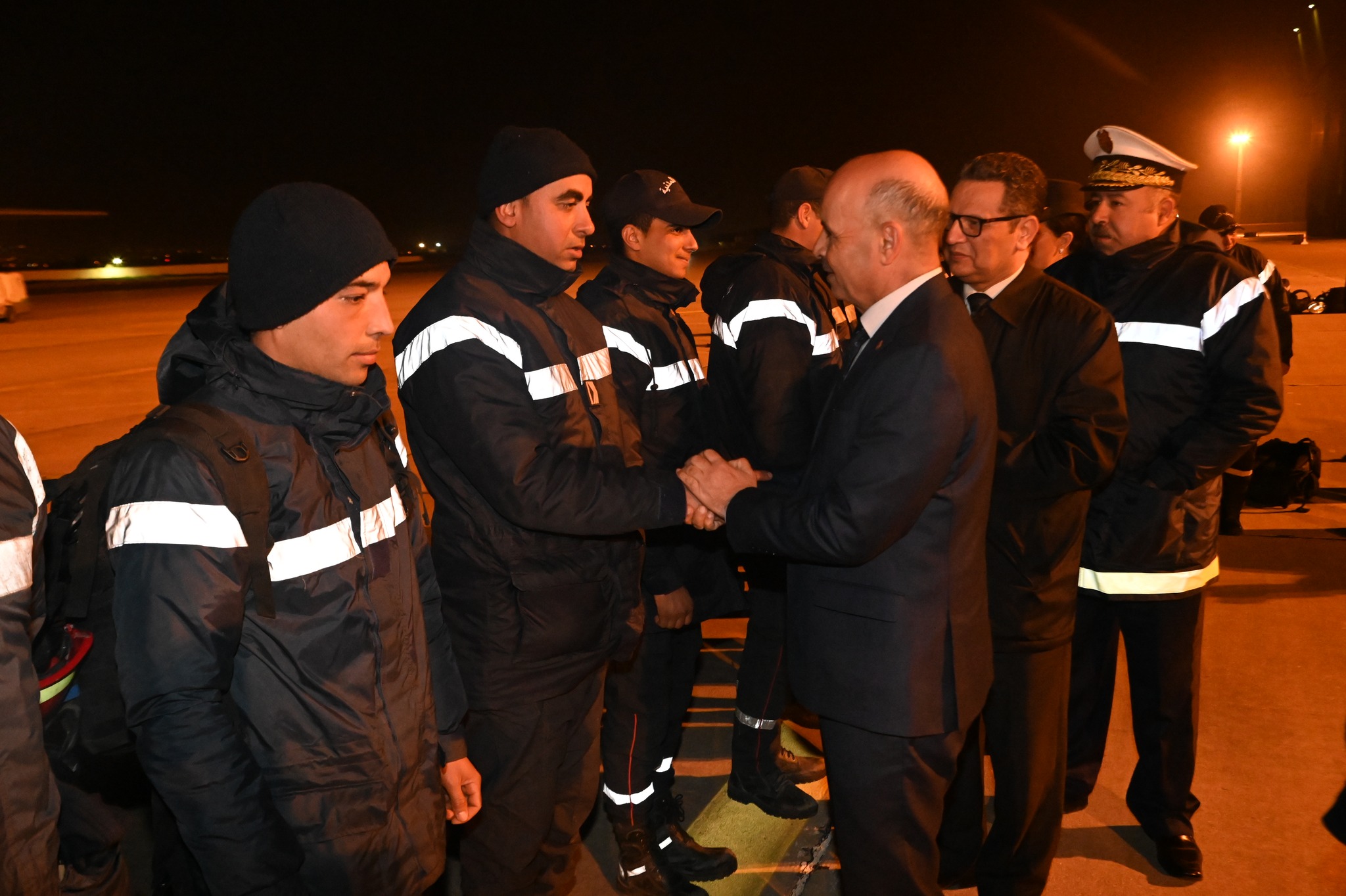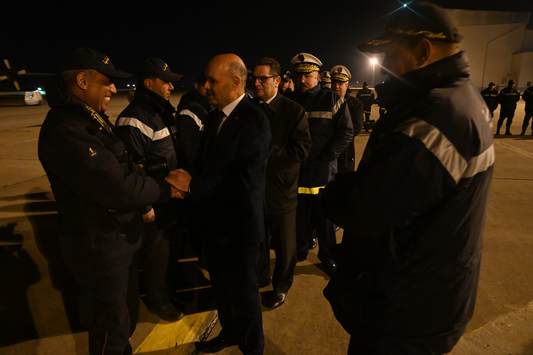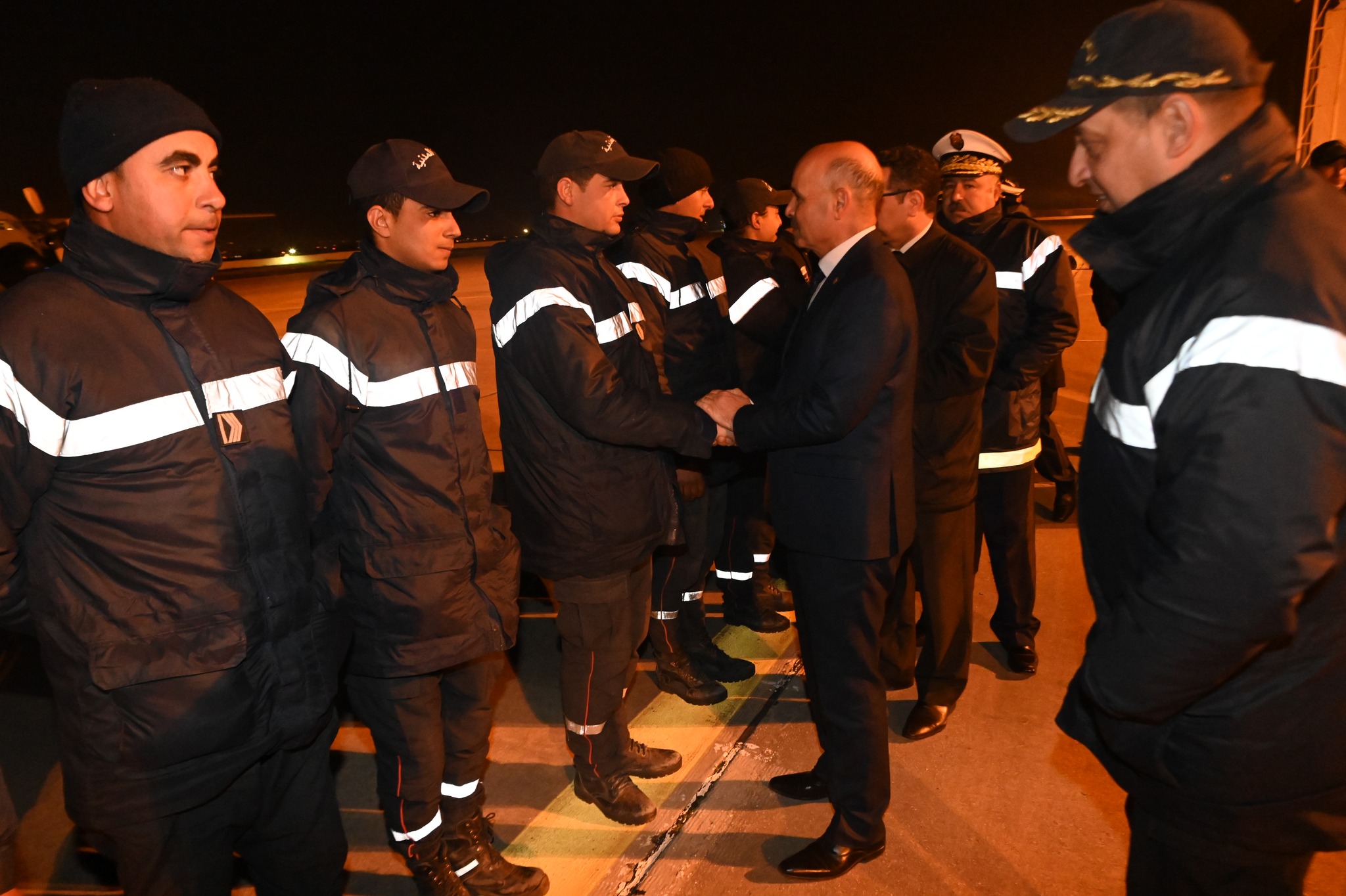 تم يوم الخميس 16 فيفري 2023 وعلى الساعة 02:00 صباحا إستقبال الطائرة العسكرية القادمة من تركيا على متنها فريق الحماية المدنية المختص في البحث والإنقاذ من تحت الأنقاض من طرف السيد المدير العام للديوان الوطني للحماية المدنية رفقة إطارات من الحماية المدنية وذلك بعد إتمام مهمة إنقاذ وإغاثة المنكوبين بتركيا على إثر الزلزال المدمر الذي جد يوم 06 فيفري 2023 والذي أسفر عن خسائر بشرية ومادية هائلة.