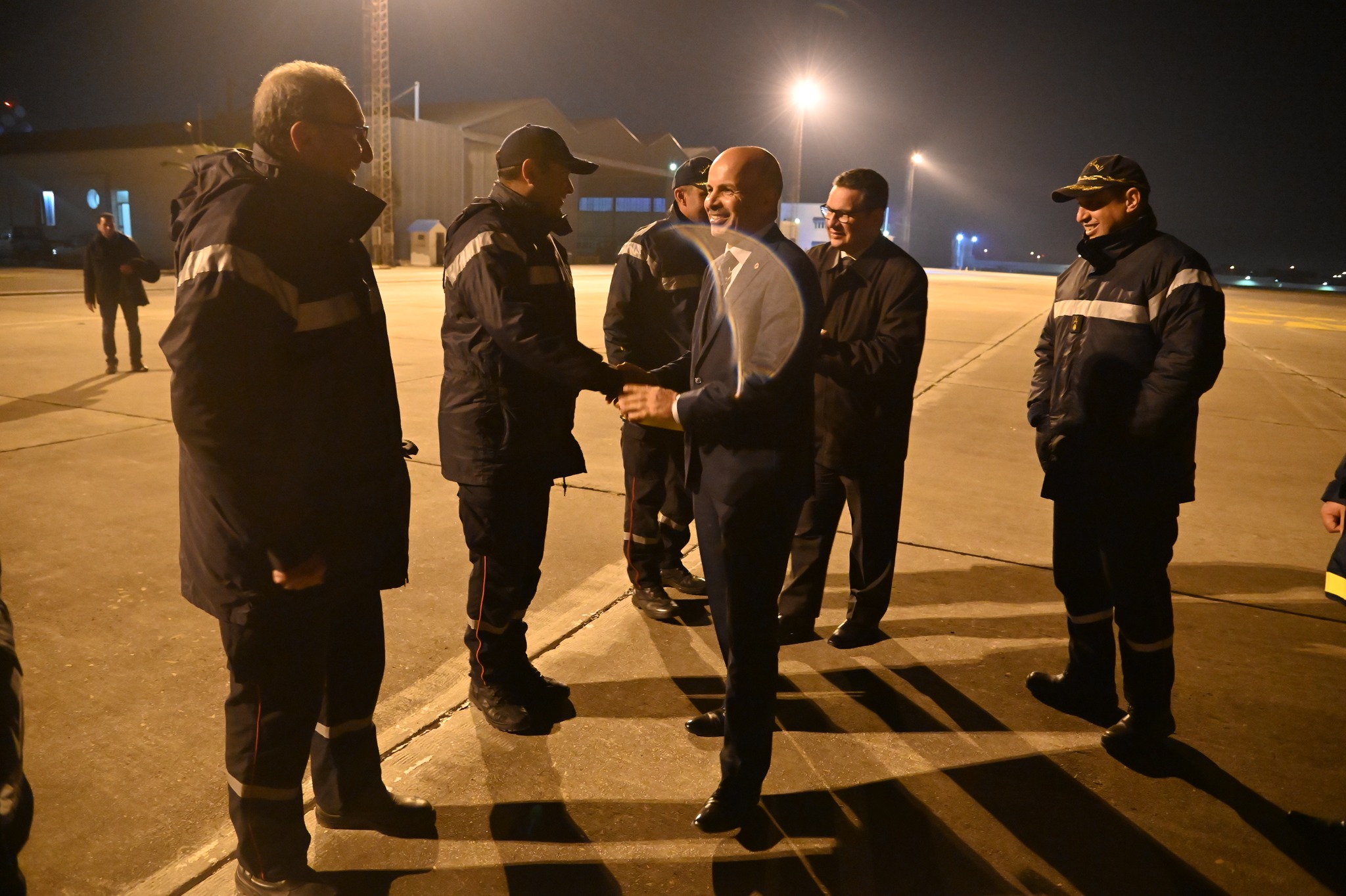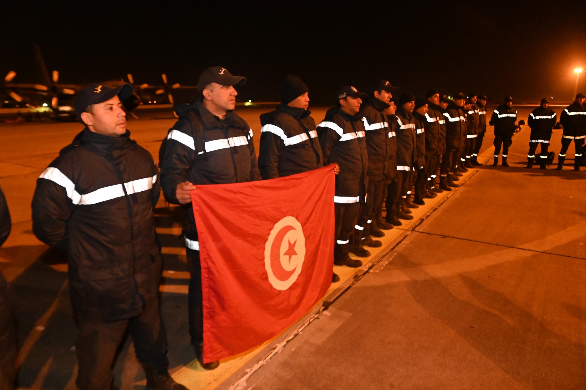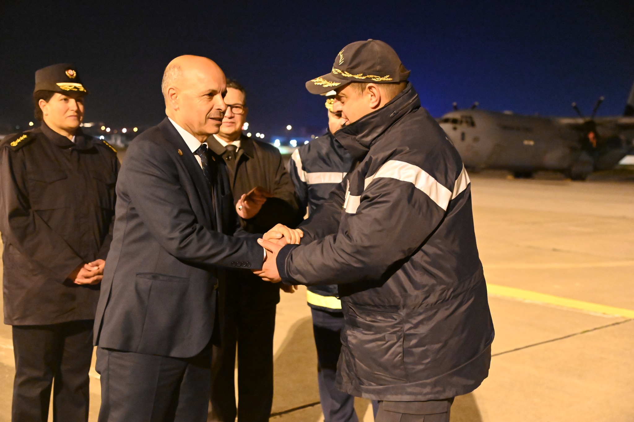 تم يوم الخميس 16 فيفري 2023 وعلى الساعة 02:00 صباحا إستقبال الطائرة العسكرية القادمة من تركيا على متنها فريق الحماية المدنية المختص في البحث والإنقاذ من تحت الأنقاض من طرف السيد المدير العام للديوان الوطني للحماية المدنية رفقة إطارات من الحماية المدنية وذلك بعد إتمام مهمة إنقاذ وإغاثة المنكوبين بتركيا على إثر الزلزال المدمر الذي جد يوم 06 فيفري 2023 والذي أسفر عن خسائر بشرية ومادية هائلة.