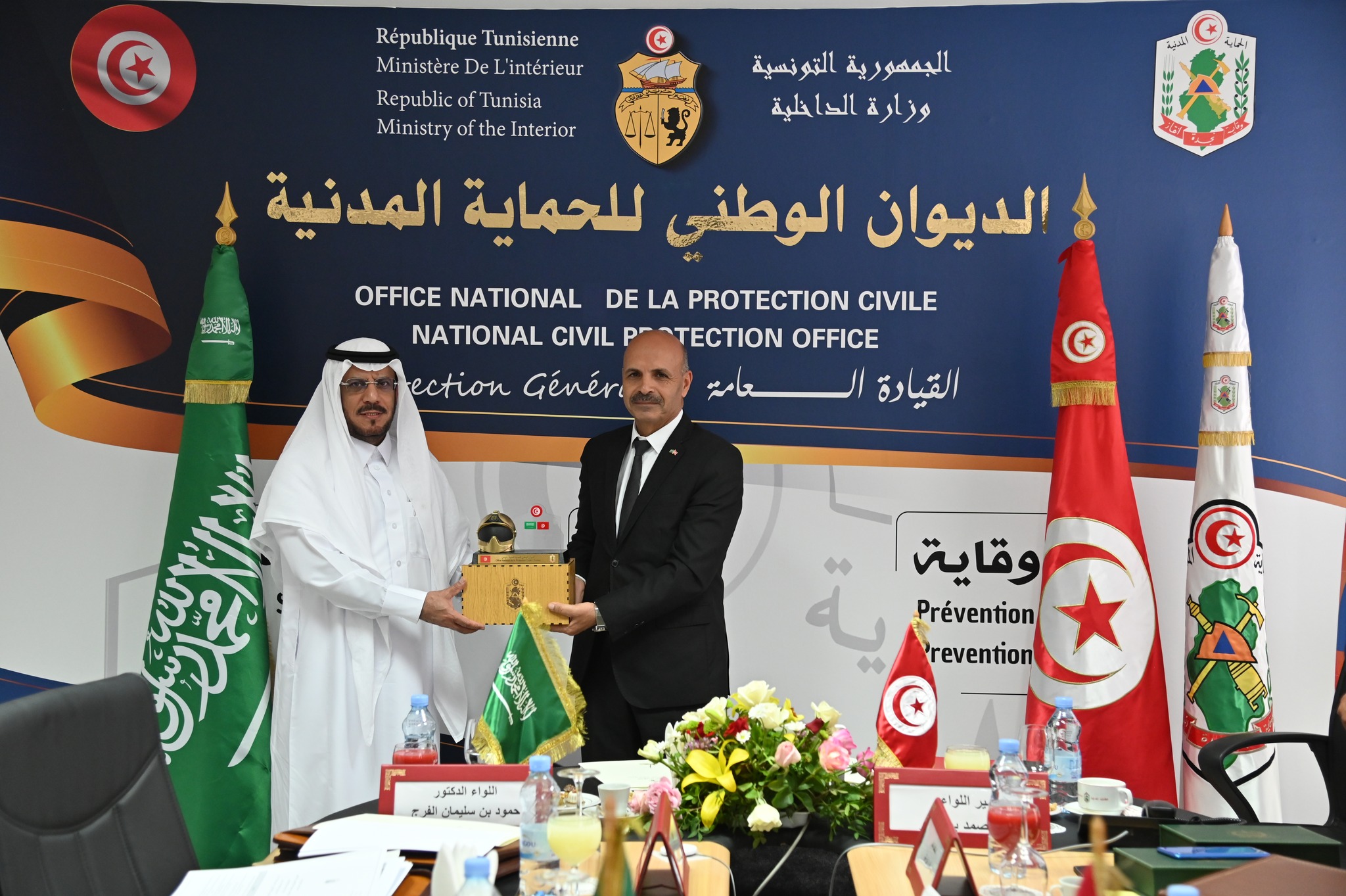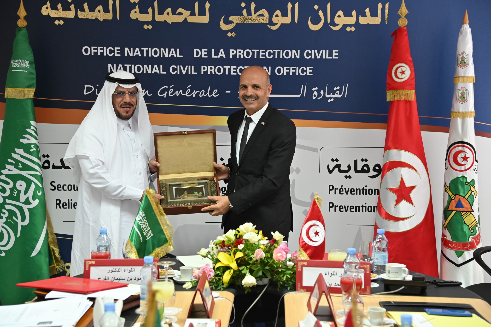 في إطار التعاون التونسي السعودي في مجال الحماية المدنية والدفاع المدني إنعقد اليوم الإربعاء 22 نوفمبر 2023 بمقر الإدارة المركزية للديوان الوطني للحماية المدنية الإجتماع الثاني للجنة التونسية السعودية المشتركة للتعاون في مجال الحماية المدنية والدفاع المدني تحت إشراف السيد المدير العام للديوان الوطني للحماية المدنية والسيد المدير العام للدفاع المدني السعودي وبحضور عدد من الإطارات من الجانبين.