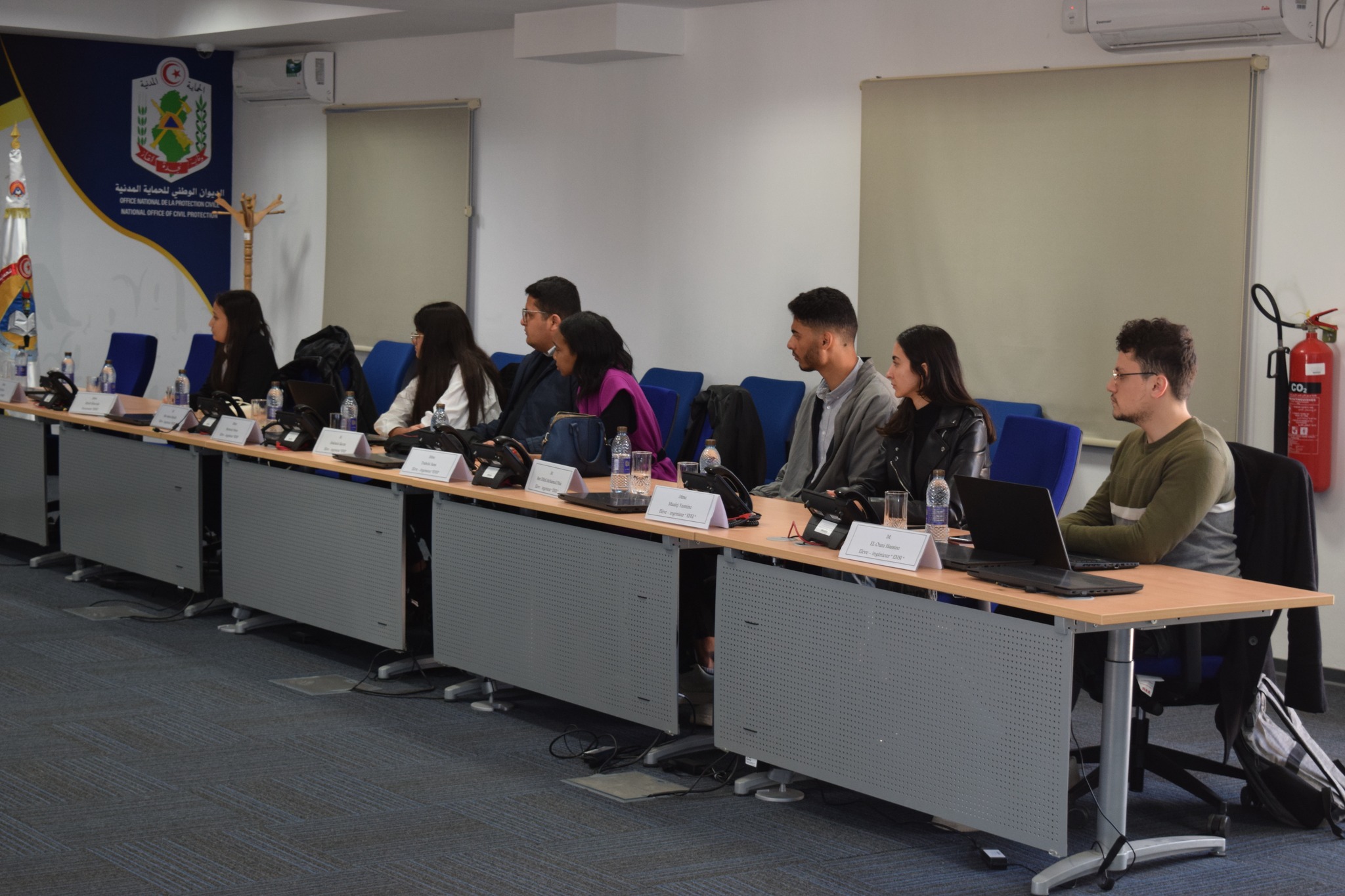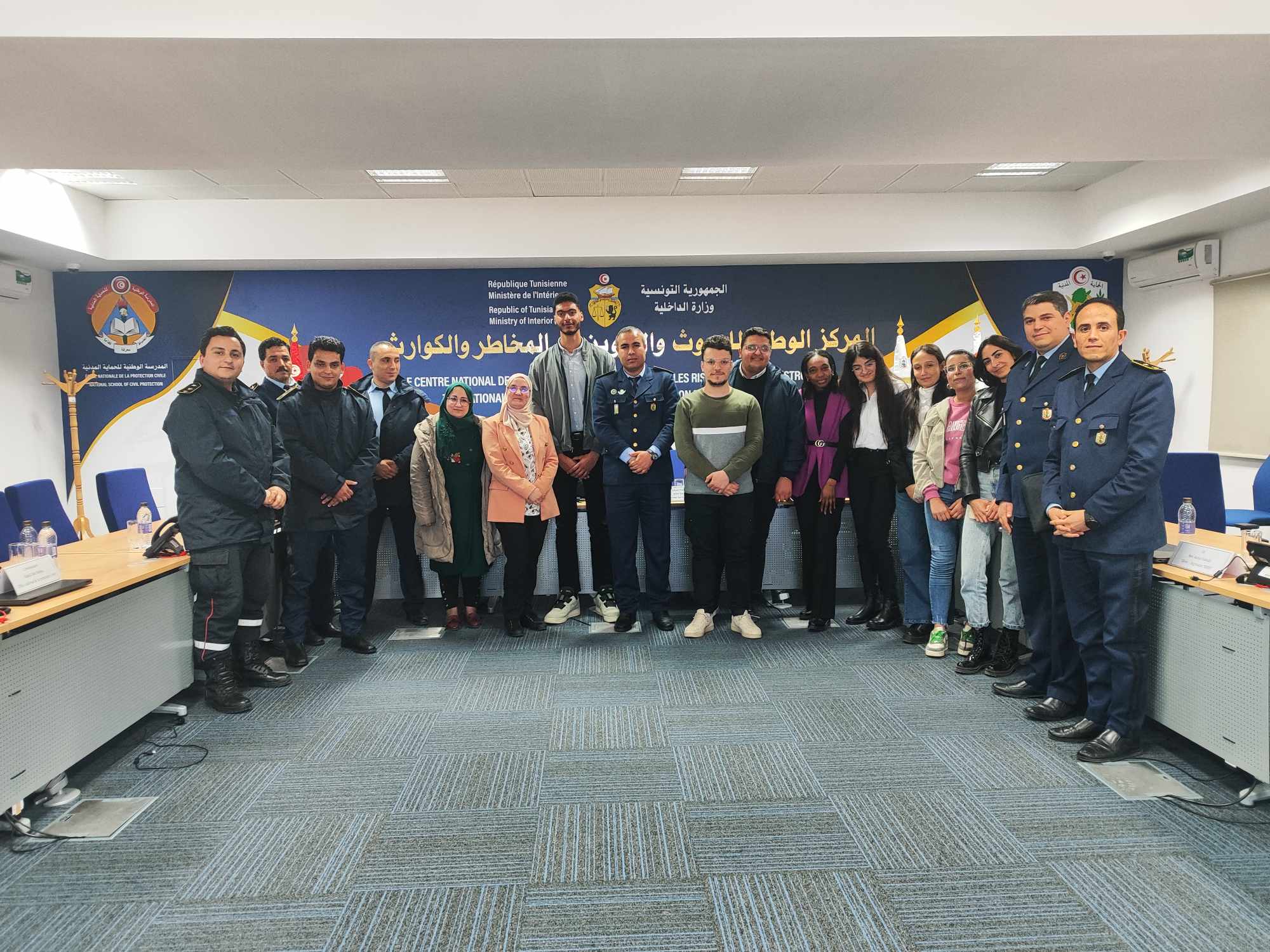 إنعقدت يوم 15/02/2024 جلسة عمل مشتركة بالمركز الوطني للبحوث والتكوين في المخاطر والكوارث ضمّت ضبّاطا من الحماية المدنية وأساتذة جامعيين وباحثين وطلبة لتدارس بعض البحوث التي تم إختيارها من قبل الطلبة.